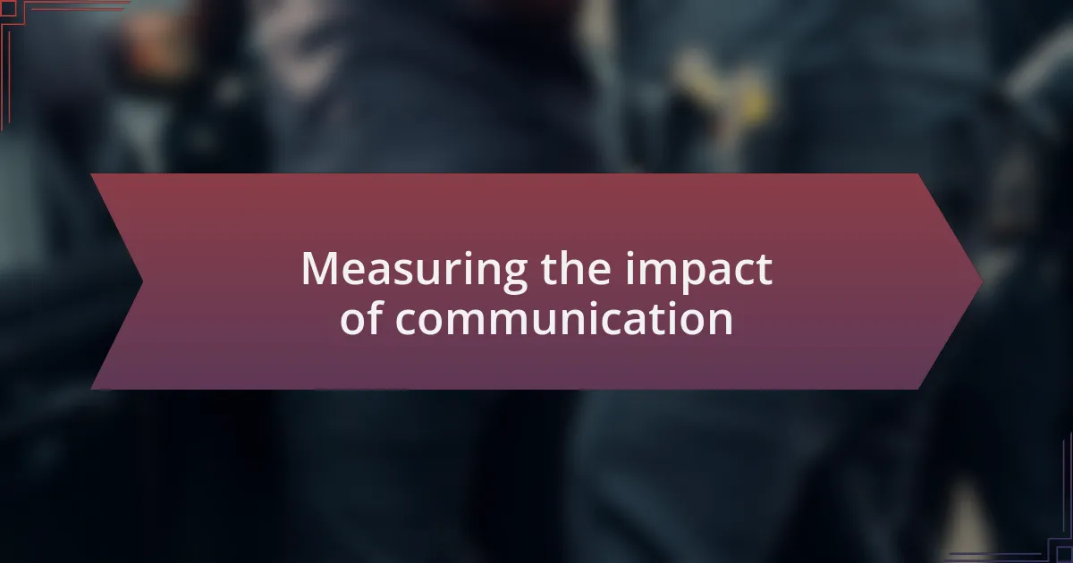 Measuring the impact of communication involves more than just gathering likes or shares; it’s about understanding how those interactions translate into employee behavior and attitudes. I once conducted a survey after a major policy announcement, and the results revealed that awareness significantly increased among those who had engaged with our social media posts. It made me realize that measuring impact isn’t just about counting numbers; it’s about gauging real change in perceptions.
