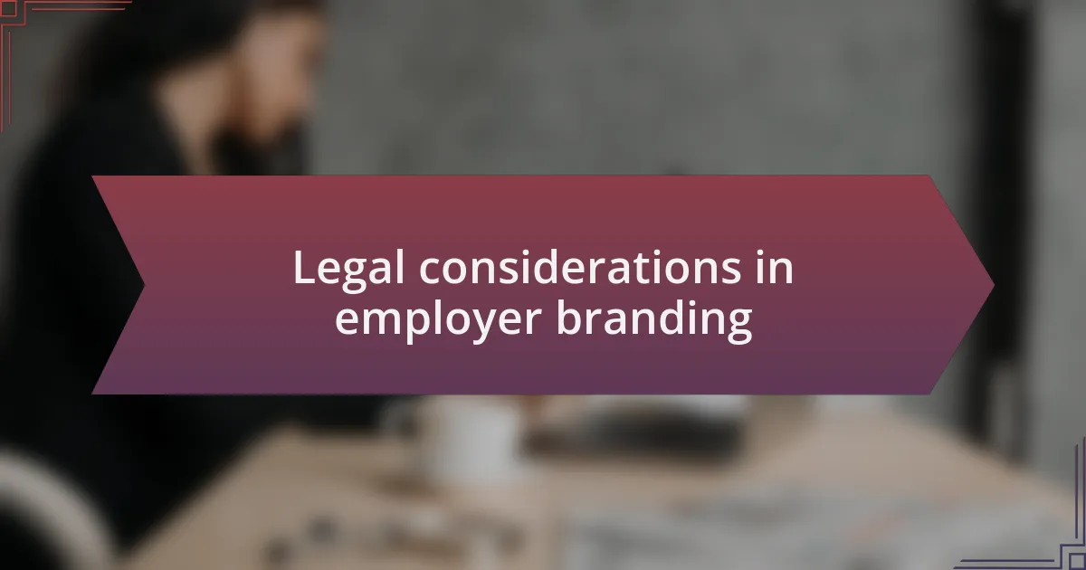 When it comes to employer branding, one of the first legal considerations that come to mind is compliance with labor laws. I once worked for a company that excitedly launched a new branding campaign, only to realize later that their messaging unintentionally misrepresented the work culture. This oversite opened up potential legal risks concerning misadvertised job roles. Have you ever stopped to think how easily a brand’s image can spiral into a legal dispute over inaccuracies?